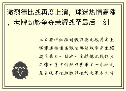 • 球迷冲突升级赛场惨烈对抗引发激烈争议警方介入调查背后原因