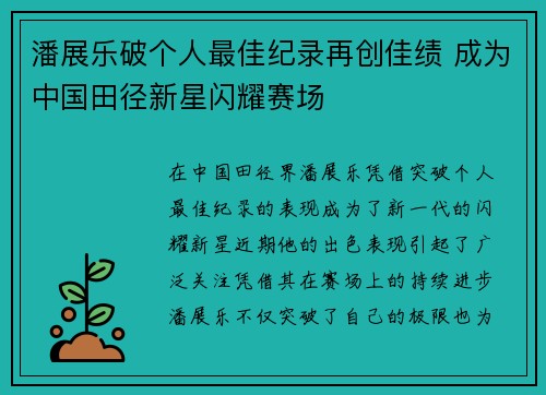 • 田径世锦赛中国选手再创佳绩 打破百米赛道历史纪录